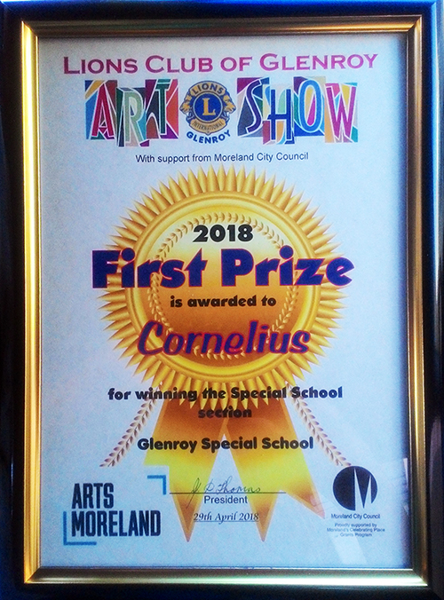 In March 2018, few weeks after Cornelius arrived in Australia and joined his new school - Glenroy Specialist School, he participated in an Art Show on behalf of his school, along with some of his school mates. His art won the first price under his category and he was given a certificate with two vouchers. The first voucher was worth a $100 and given to him while the second was $300 awarded for his school. He used the $100 voucher to purchase his art materials. In August 2018, the family was advised by the medical insurance provider that Cornelius' condition is not covered so the family is now raising funds to assist with his medical expenses. His dad (currently studying in Melbourne, Australia) had painted some artworks from the resources Cornelius purchased to help raise funds for Cornelius' expenses. For those willing to support Cornelius through the purchase of the artworks, please visit the website via link HERE. To know more, please contact the family on email pyalamu[at]gmail[dot]com. |